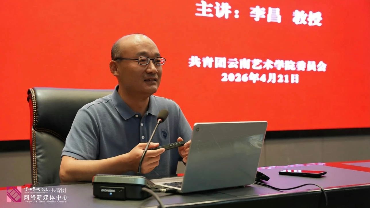 2026年4月21日19:00,云南艺术学院在图书馆报告厅举办第十六期青马培训班第七次集中培训暨团学骨干培训。“云岭视听人才”国际传播领军人才、云岭大讲堂优秀主讲人、省委优秀智库专家、昆明理工大学艺术与传媒学院李昌教授到校授课。